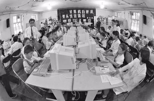 在位于北京的中国儿童少年活动中心,小朋友们在微型计算机前做有趣的游戏(1982年摄)。新华社记者 杨绍明 摄