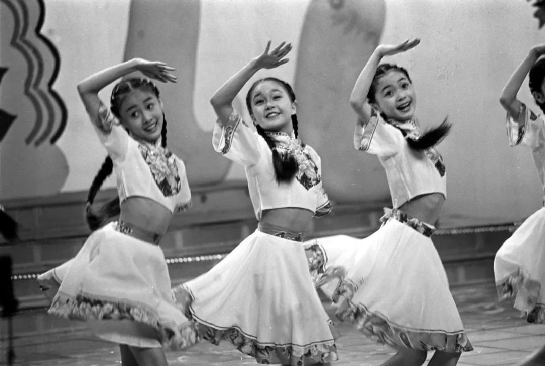 北京宣武区小学生在庆祝“六一”国际儿童节的游园联欢会上,演出舞蹈《祖国花朵向阳开》(1975年6月摄)。新华社发