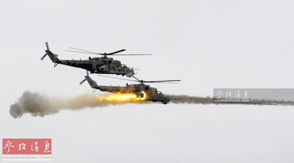 资料图:叙利亚战场上米-24在实施对地攻击。
