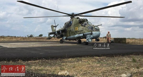 资料图:停机坪上的驻叙俄军米-24武装直升机,可以看到为战时装填方便,大量弹药就堆积在旁边。