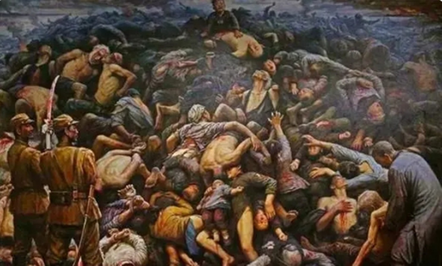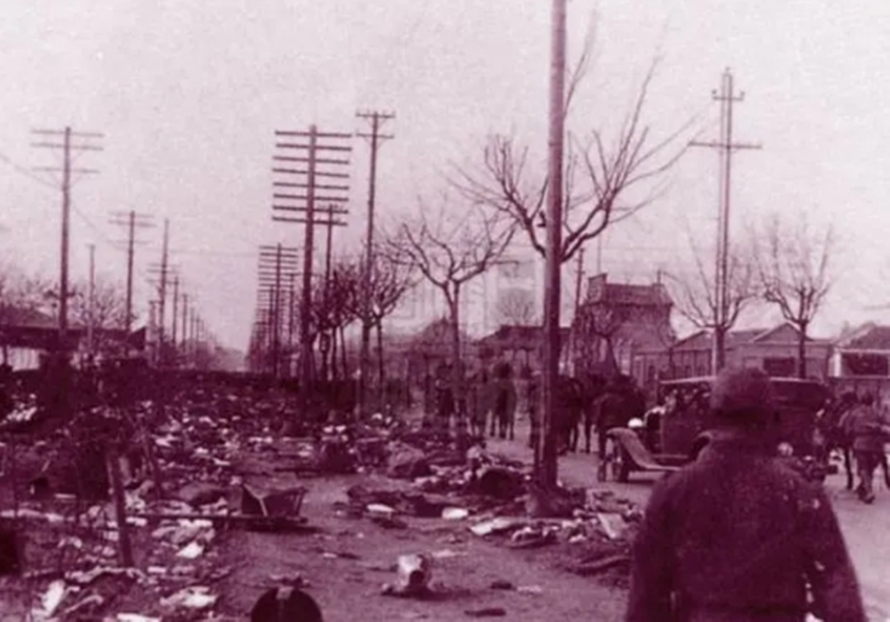 南京城的河水全部被染上了鲜红的颜色,尸体横七竖八的堆叠在岸边。