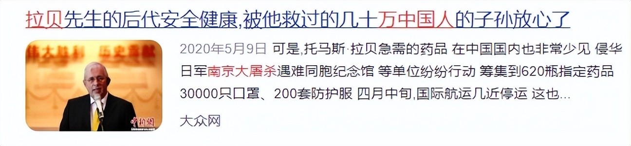 1、拉贝先生的后代安全健康,被他救过的几十万中国人的子孙放心了——大众网2020年5月9日