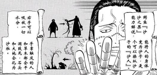 沙·克洛克达尔,称号“沙漠之王”,阿拉巴斯坦篇章的主要反派人物。沙沙果实能力者,能自由的操控沙子,并能将身体沙化。
