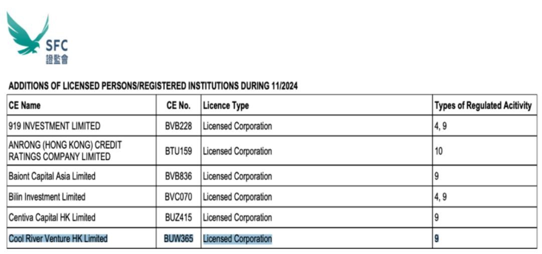 张一鸣转向AI此前已有迹象。据界面新闻报道,11月21日,张一鸣通过旗下公司Cool River Venture HK Limited,成功获得了香港证监会颁发的9号资产管理牌照。