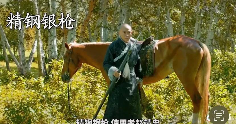 夜鹰使用者兵修苗刀是一种双手持用的长刀,因其刀身修长如禾苗,不名苗刀。它多被用于对抗骑兵和倭寇,所以又被称为御林军刀。描刀刀形总长五尺,刀身三尺七寸,刀柄一尺三寸。他兼顾了刀、枪两种兵器的特点,既可单手突刺,也可双手劈,临敌运用时刀随人传,势如破竹,杀伤威力极大,颇有当年陌刀的风采。在这场骑兵对抗戏中,加前居士丁修仅凭一把摇刀独自对抗13名骑兵,丝毫不落下落,足以见得此刀的厉害之处。值得一提的是,在第二部中,陆文昭所使兵器也是一把刀,只不过他这把刀融入了一些斩马刀的设计,刀身前半部分开刃用于攻击,后半部分不开刃用于格挡。刀柄红色丝带缠绕,配上金色雕花,甚是好看。金刚银枪使用者赵敬中,