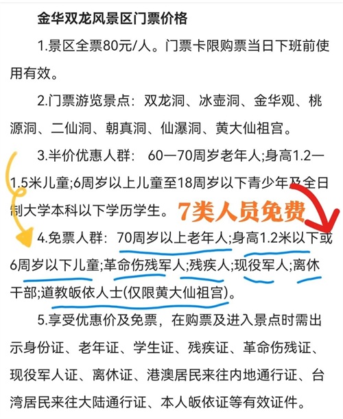 金华双龙风景区免票政策