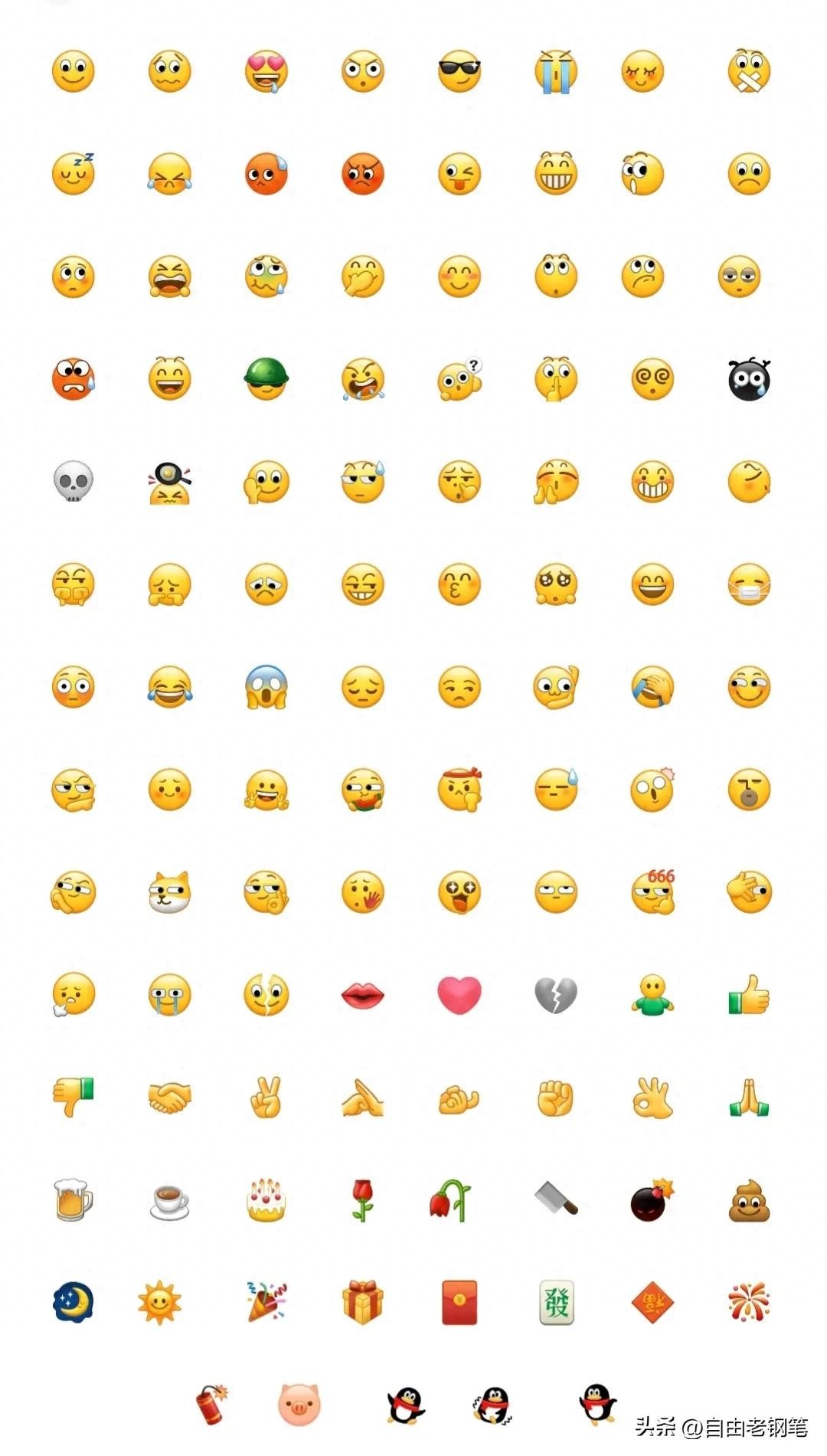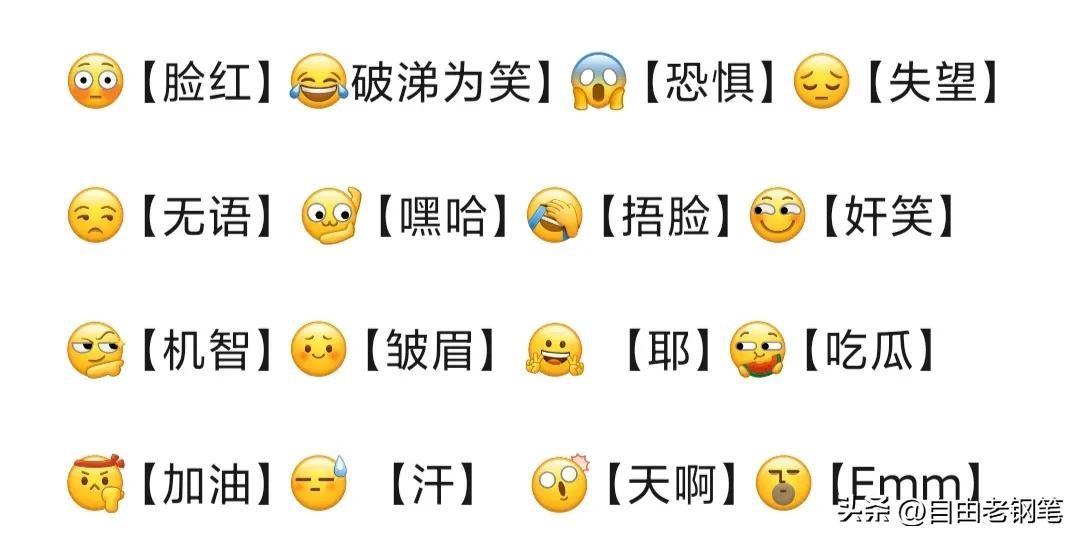 我们用表情符号,首先就要懂得图符表达的意思,这样才不会出洋相闹尴尬。下面是“自由老钢笔️”在下班后花了两晚上,仔细认真整理出微信中109个表情符号的图意,希望得到你的认可。