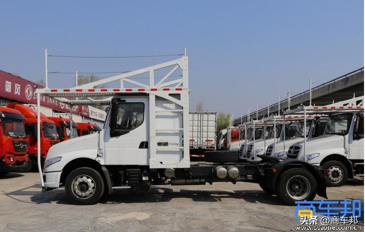 第六,精准的市场解决方案。以快递快运场景为例,为了在法规范围内不断扩大货箱容积,东风柳汽9.6米大单桥18吨中卡车型采用了底盘小轮胎设计,货箱高度达到2770mm,货箱容积同比增加4立方米,整体容积可达到65立方米;牵引车产品采用了低鞍座设计,鞍座高度由原来的1330mm将至1140mm,货箱高度可达3060mm,货箱容积同比增加7立方米。4x2牵引车采用3800mm长轴距设计,可匹配多种长度的挂车。