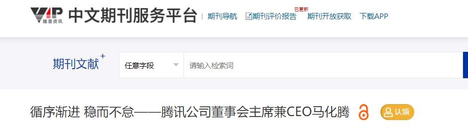 中文期刊:循序渐进 稳而不怠——腾讯公司董事会主席兼CEO马化腾