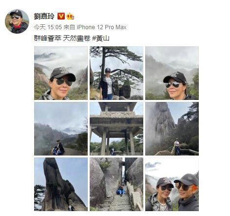 4月3日,刘嘉玲在个人社交平台晒出一组爬黄山的照片,配文写道“群峰荟萃 天然画卷 ”。照片中,刘嘉玲戴着黑帽子和墨镜,素颜出镜的她皮肤泛红,状态不错。