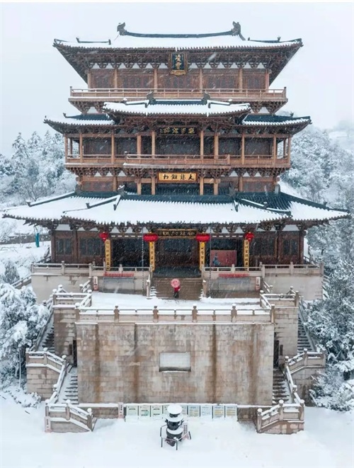 雪和寺庙果然是绝配,径山寺在一片白雪皑皑中挺立,就是现在寺庙暂未开放,只能徒步上山。雪天路滑,大约需要1个多小时。