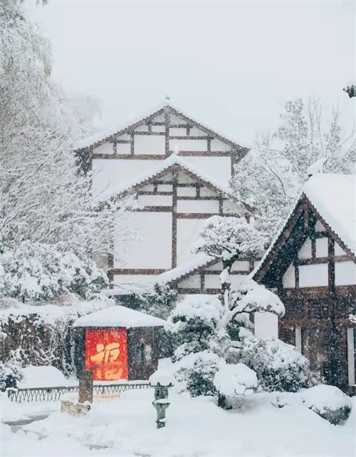 屋顶积雪和湖面倒影真是让人大饱眼福,很适合汉服写真哦。