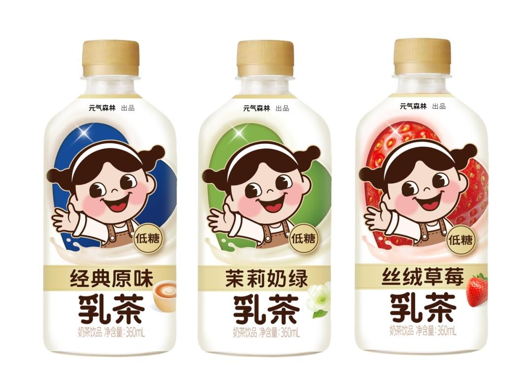元气森林的瓶装乳茶产品也在今年9月完成了更新,在保持了低糖卖点的同时,有“经典原味”“茉莉奶绿”“丝绒草莓”3种口味,360ml单瓶售价在6元左右。