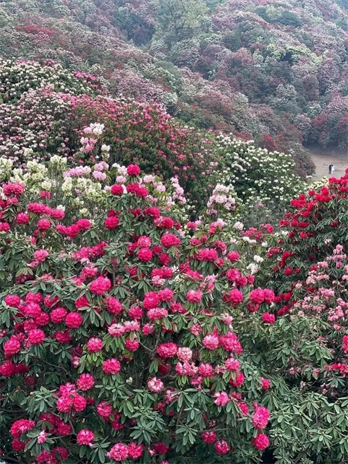 品种繁多,其中美容杜鹃,花冠粉红,花筒粉白,树高10m,有翠绿长叶衬托;马缨杜鹃,树高4一5m,繁花簇从;团花杜鹃,色似蔷薇,花序密集;树型杜鹃,树高丈余,花色紫红、还有罕见的百合杜鹃、青莲杜鹃、露珠杜鹃、蝴蝶杜鹃等。