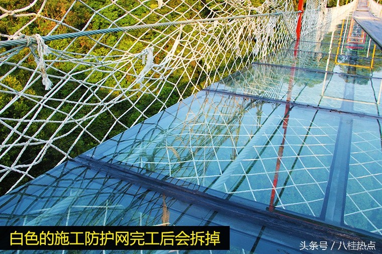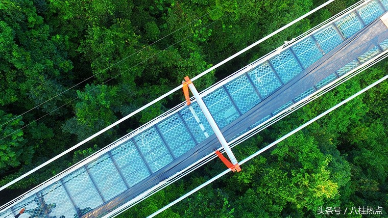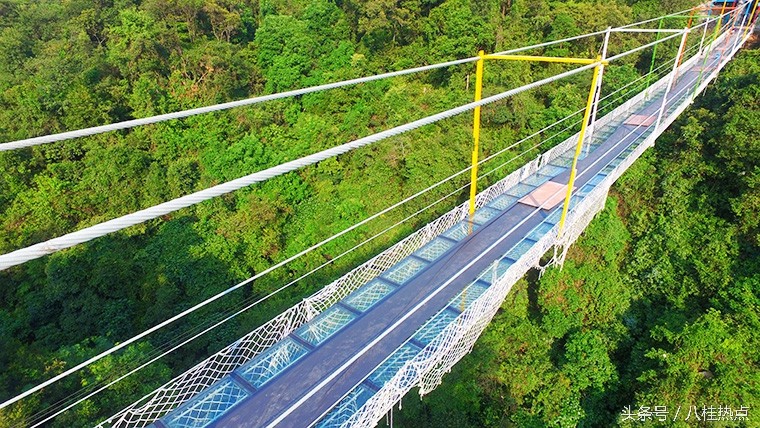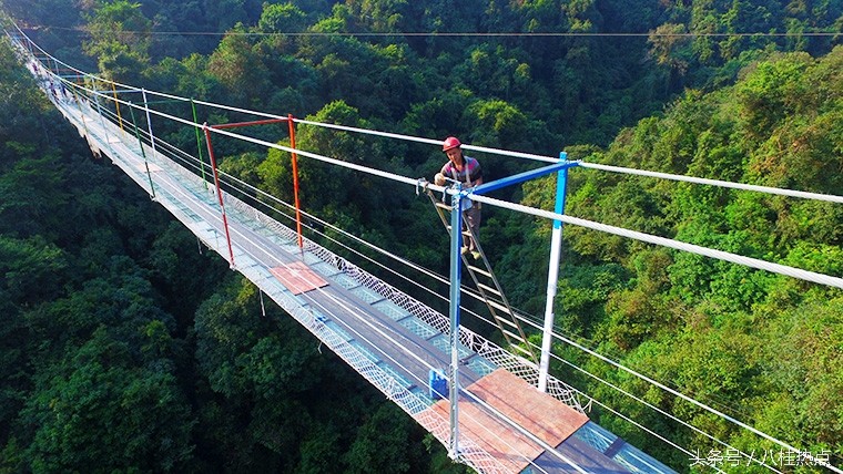 航拍:广西首座玻璃悬索桥进入完工倒计时
