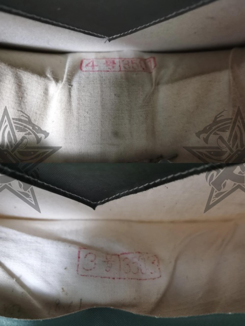 笔者收藏的两顶74式海军干部大檐帽都是隔电纸帽檐,一顶3号一顶4号,3号是3503厂制造的,4号是3501厂制造。