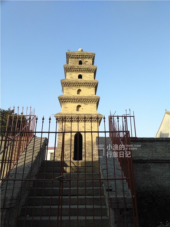和善导塔一墙之隔的这座小塔,周边没有任何指示牌,但是用铁栏杆围起,表明它还是有些“身份”的。小渔在网上查了查,发现这座他是善导大师的弟子净业大师的供奉塔。