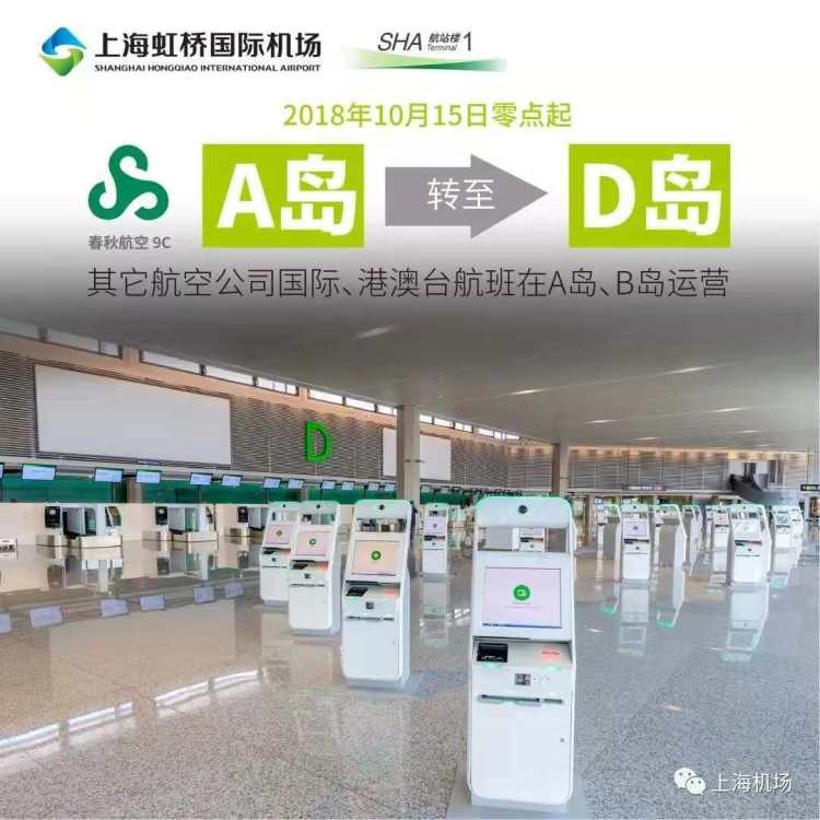 当天零点起,春秋航空航班将从1号航站楼A岛转至D岛运营,其它航空公司国际、港澳台航班在A岛、B岛运营。