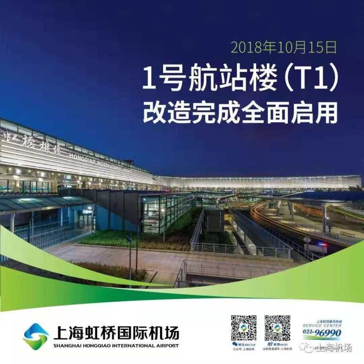 周到君从上海机场集团获悉,上海虹桥国际机场1号航站楼(T1)将于10月15日改造完成全面启用。