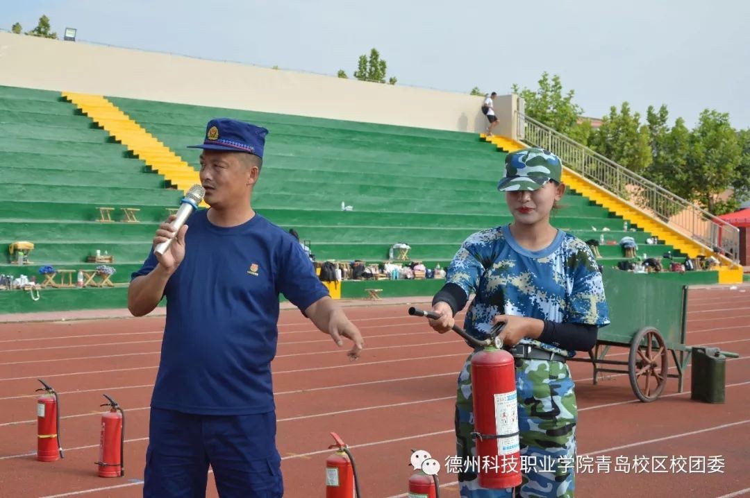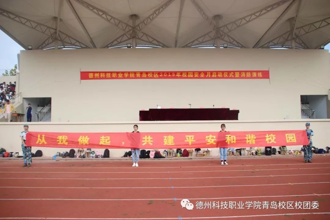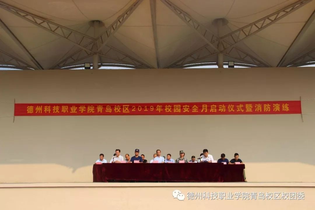 为使全院师生牢固树立安全第一的思想,增强安全防护意识,9月4日下午3时,德州科技职业学院青岛校区在田径场举行了校园安全月启动仪式暨消防演练。2019级全体新生到场参加。