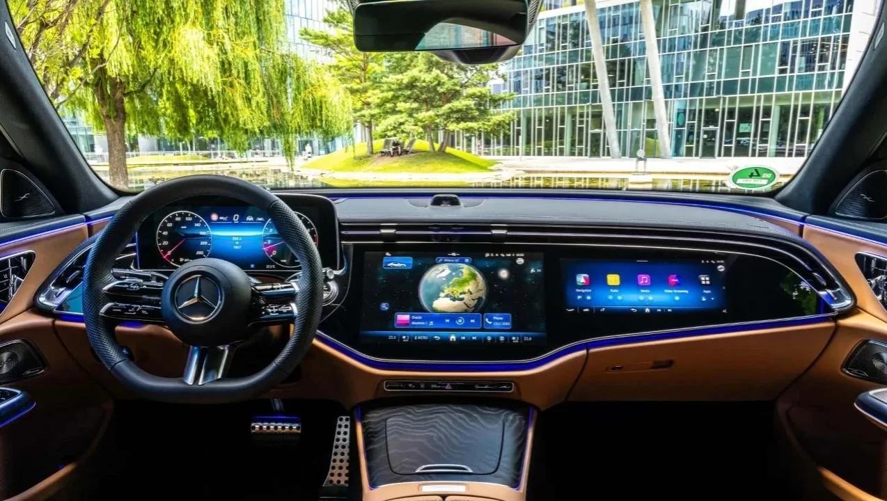 内饰方面,2024梅赛德斯-奔驰E450 4Matic同样展现了奔驰的豪华与科技感。车内采用了大量高品质材料,如高级皮革、精致的金属饰件和木纹饰板,营造出一个舒适且尊贵的驾乘环境。中控台配备了奔驰最新的MBUX信息娱乐系统,操作界面简洁直观,功能丰富,为驾驶者和乘客提供了便捷的交互体验。