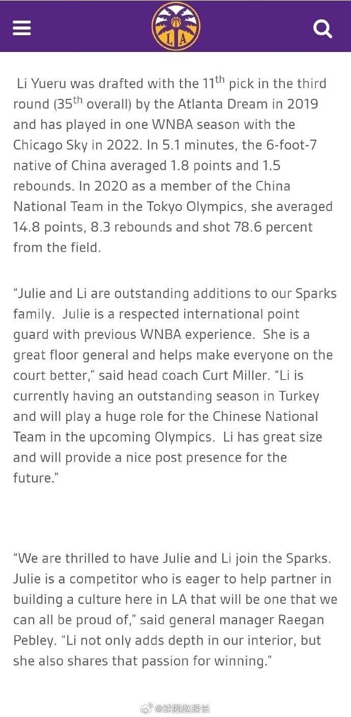 而这场引人注目的交易背后,又隐藏着怎样的内幕?洛杉矶火花队的决策者们又是如何看待这次引援?这或许是一个耐人寻味的谜题,需要我们逐一揭开。