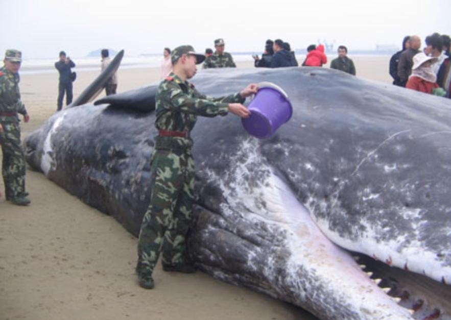 当然,面对搁浅的鲸鱼,我们也不能袖手旁观。及时通报专业人员,同时往它们身上浇淋海水,保持其身体的湿润度。并且,在有条件的情况下,利用大型机械,将其放置为背部向上的姿势,清理其呼吸孔的堵塞物,等待送其回到海洋的契机。