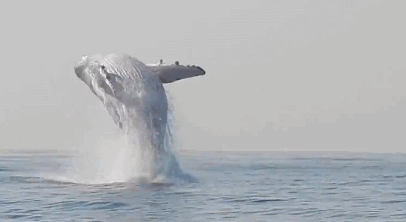 出现在热带雨林的座头鲸