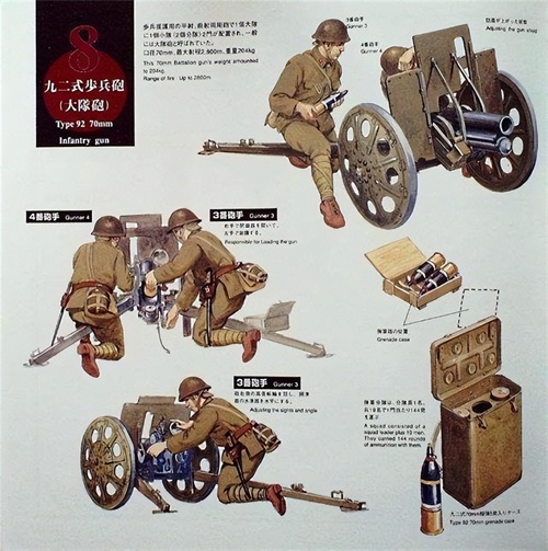 第一个是轻便,70毫米口径的步兵炮放在欧洲基本都在400公斤往上而九二步兵炮只有200公斤,除了可以用牲畜拖拽外也可以拆解携带或者由士兵拖行,战斗时如果被发现士兵拉着就跑了,也正因为这个优点九二步兵炮成为日本大队级别的支援火炮,通常日本一个大队装备2门九二步兵炮(日军一个满编大队1100人,在抗战时期等同于中国军队的团级单位);