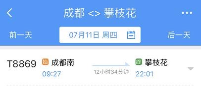 7月11日,T8869(成都-攀枝花)从成都南始发时间为9时27分,到达西昌为18时51分,终到攀枝花为22时01分。其余部分列车运行时刻也有调整。