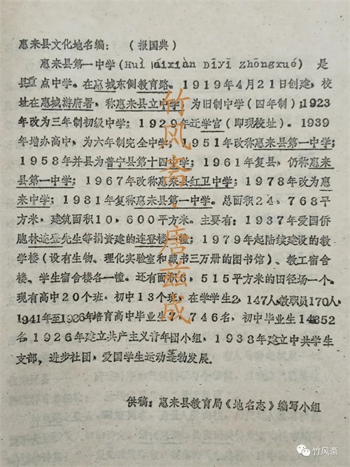 惠来县第一中学今昔
