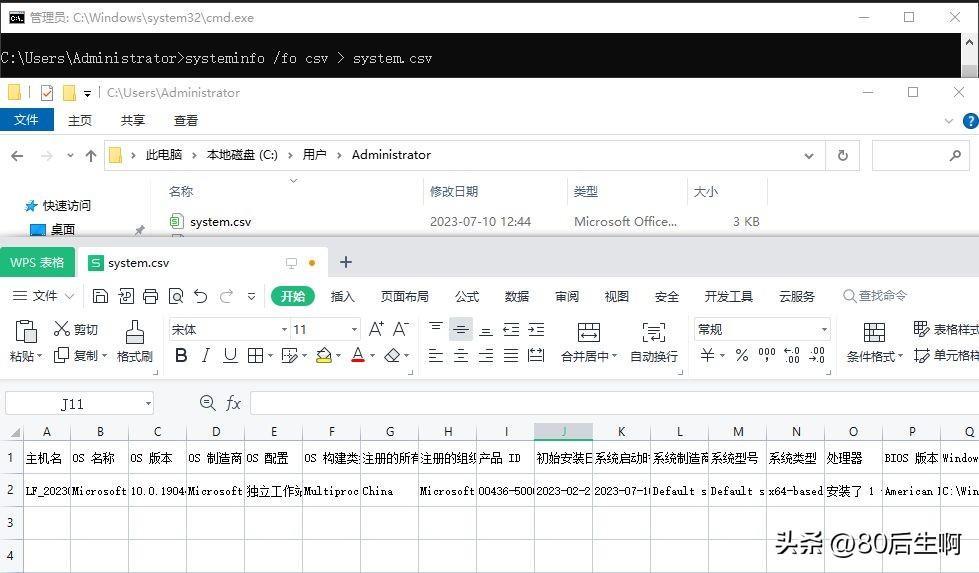 例如:systeminfo /fo csv