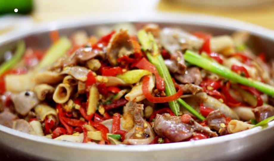 到了重庆,一定要品尝黔江鸡杂。这道菜以鸡心、鸡胗、鸡肝等为主料,配以辣椒、泡椒和葱姜蒜炒制而成。可以这么说,这道菜既适合搭配酒品,又能与米饭或面条一同食用,味道相当美妙!