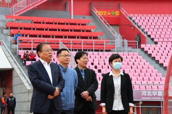 2.4月9日下午,廊坊市委书记杨晓和来到廊坊体育场,看望慰问即将出征2021年度中国足球超级联赛的河北足球俱乐部管理人员和运动员。随后,杨晓和观看了球员们与北理工足球队的热身赛,并对河北足球俱乐部全体管理人员和运动员上下一心、全力争胜的精神面貌给予充分肯定。