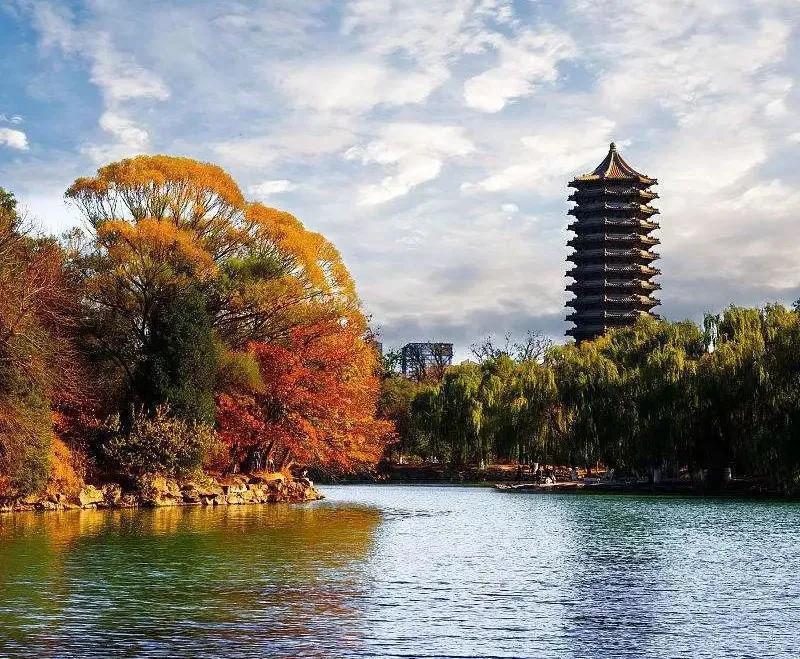 所谓“塔”指的是博雅塔,塔高37米,系仿古建筑,高大,端庄,正直,俊美,深沉,稳健,充满阳刚之美,颇具古典气息和中国风范。北大校园的楼宇都偏矮,博雅塔则像一位巨人矗立在未名湖畔,成为莘莘学子举目皆可凝视、仰望的景观。最妙的是塔的命名,博而能雅,教育和求学的目的不正在于此吗?