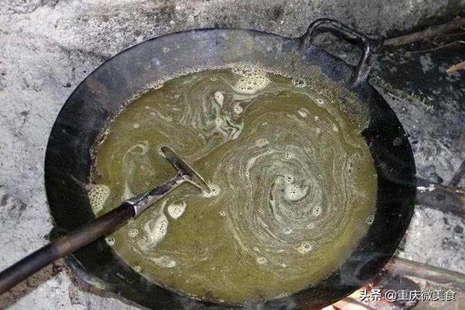 然后炒,炒出小肠里装的没有完全消化的草料。