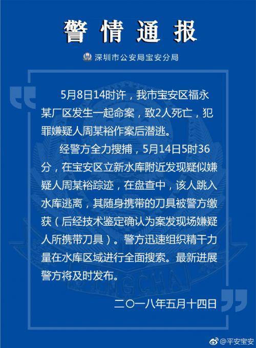 深圳宝安福永杀人案:男子持刀砍伤致2死 警方全面搜索