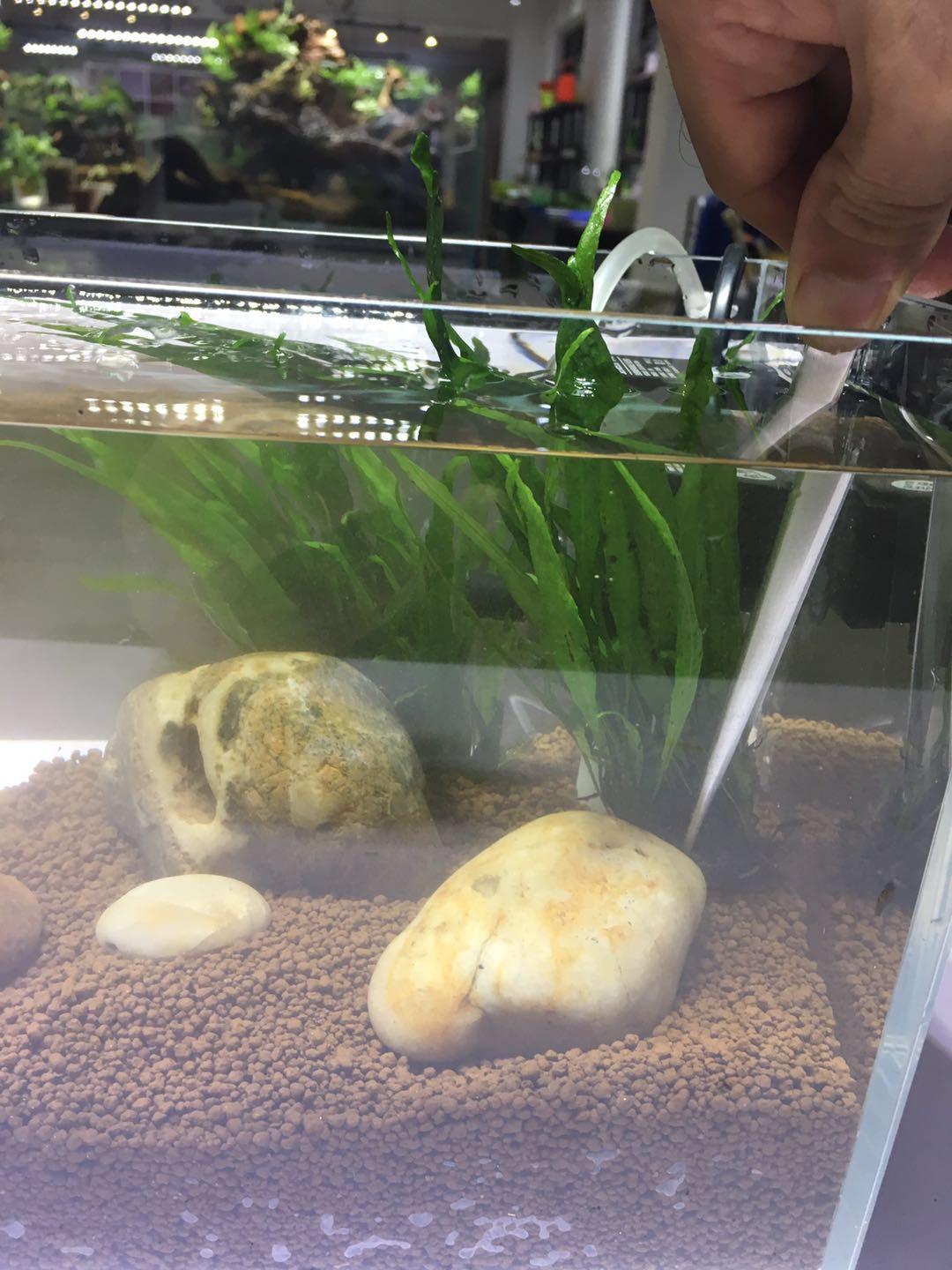 最后来点总结,一个生景观缸好不好看,石头摆放位置,水草种植很关键,这要慢慢去体验实践进步的,刚种好水草水有点浑没关系,三四小时后就是这样子了;