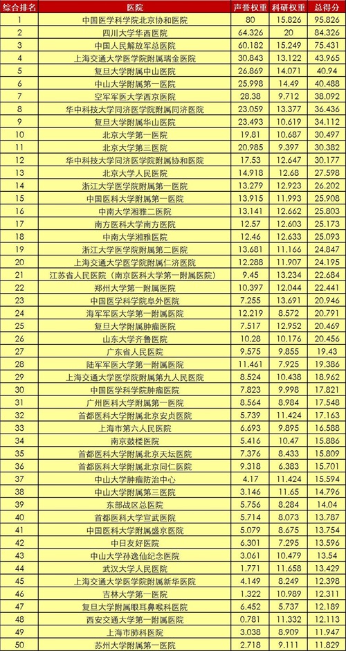 由复旦大学医院管理研究所邀请国内著名同行专家担任评审的《2018年度中国医院综合排行榜》和《2018年度中国医院专科声誉排行榜》11月10日在上海市发布,北京协和医院、四川大学华西医院和中国人民解放军总医院继续名列排行榜前三甲。这是复旦版中国医院排行榜连续第十年发布。