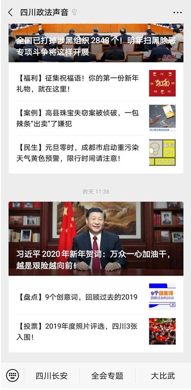 评估组指出,四川长安网网站和四川政法声音新媒体运营求真务实、传播简洁高效、思路新颖独特,结合图文、视频、直播等网民广泛关注和喜闻乐见的展现方式向群众宣传政法部门和政法工作者的勤奋工作与真实生活的点点滴滴。通过分享真实事件的执法、营救现场,科普法律法规知识,向社会传播“政”“法”“真”能量。构建起了政法部门亲民形象,拓宽了宣传渠道、提升了服务能力。通过着力打造政法网红新媒体品牌,不断增强政法宣传工作传播力、创新力。