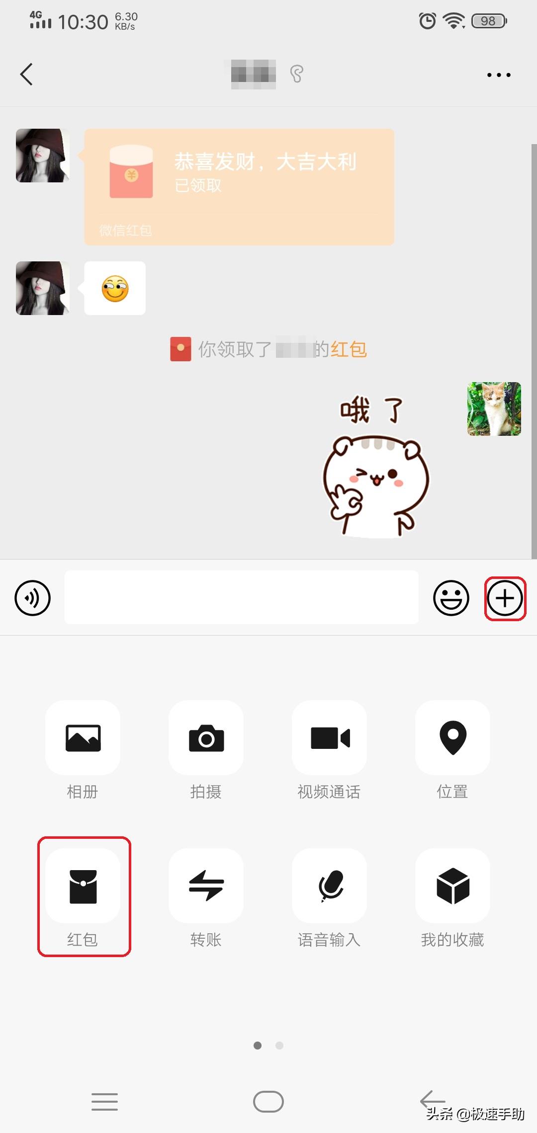 第二步,进入到与好友的聊天界面当中后,找到右下角的【+】加号按钮,并点击它,然后在弹出的界面中,选择【红包】选项。