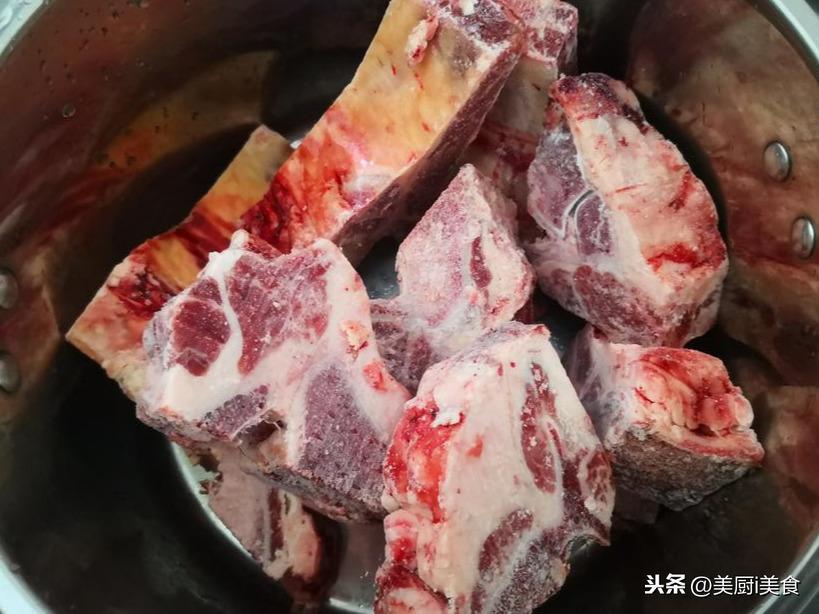 2、牛脊骨冷水浸泡4个小时,中间要换4次水,将血水尽可能都浸泡出来,浸泡越彻底,炖出来的汤味道越好,汤色越正。划重点:牛骨汤为什么不白?这是因为骨头里面带血,特别是腿骨靠近关节的地方,煮了之后,有的血变成沫能撇出去,有的则还残留在骨头里,所以要充分的浸泡;