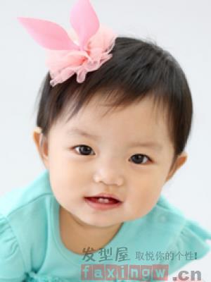 如果妈妈们觉得给宝宝们扎头发会拔头皮,那就简单的梳理成斜刘海的短直发发型,搭配可爱的发饰,甜美又可人。