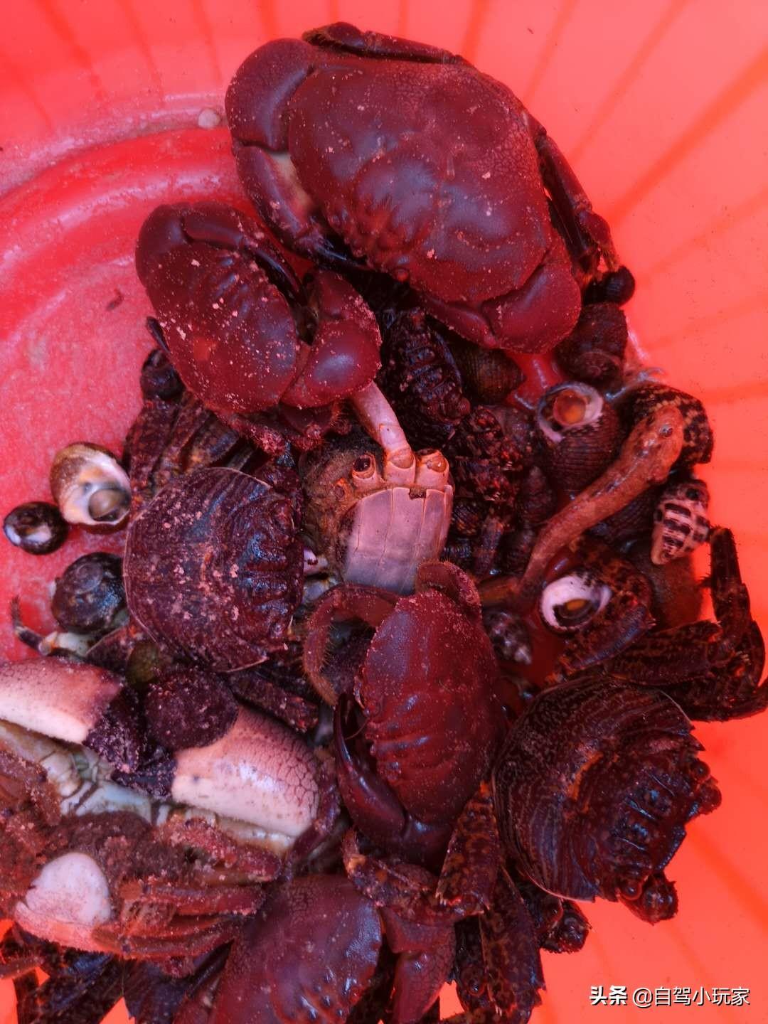 这个沙滩是谜一样的存在,因为很难被发现,小玩家也是偶然经过,看到很多当地村民在这里赶海,才知道这地!这里主要还是挖沙贝,赶海高手可以去礁石区抓螃蟹,货还算多,但是得凭真本事!这地方也叫咸台港,路不是很好找,而且有两条路,很容易走错,所以想去的朋友一定要看准路线哈。
