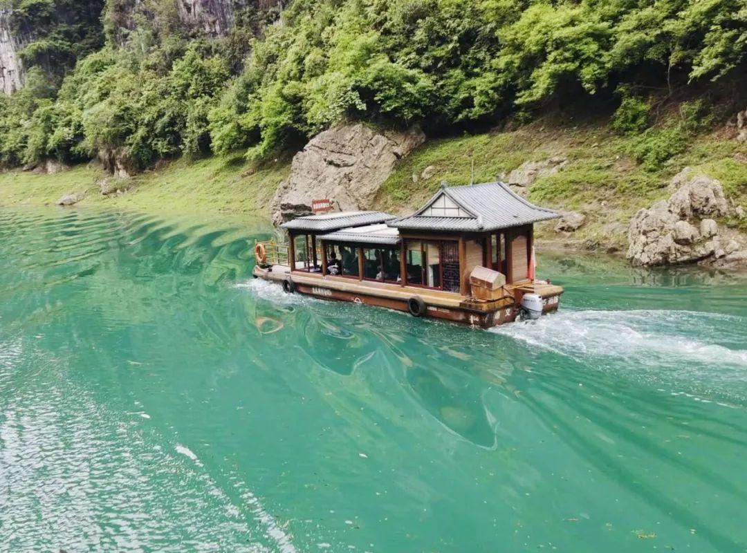 清溪峡未修建环湖栈道,基本只能划船和漂流,沿途风景也非常单调。