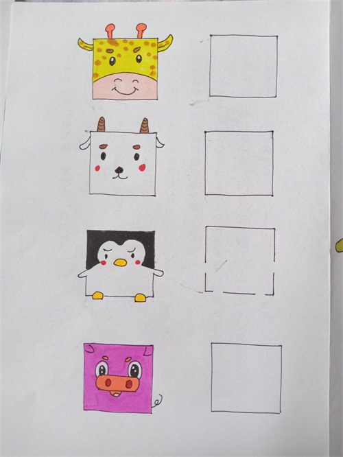 我把网上的关于正方形的简笔画都临摹了一遍,并都留出了临摹空框。