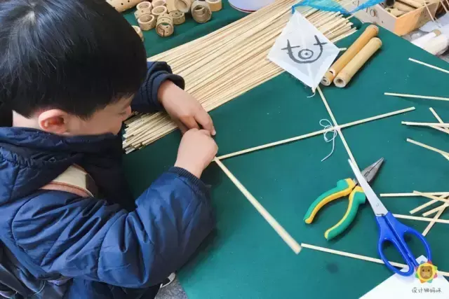 看了大孩子们的作品,小孩子也手痒痒,想要试试看,那扎风筝再合适不过了,用两根竹片来做个最简单的菱形风筝;
