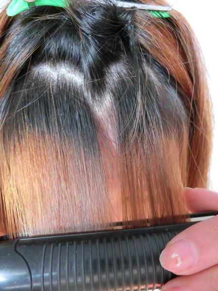 以免剪毁,剪缺,接下来我们把分出来的头发再次夹直。