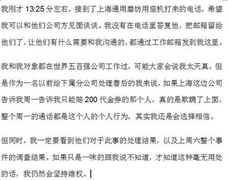 更令她不满的是,哈根达斯告诉她,出于人道主义,只能给她200元现金券作为赔偿。