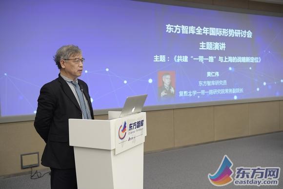 图片说明:东方智库研究员、复旦大学一带一路研究院常务副院长黄仁伟教授作主题演讲